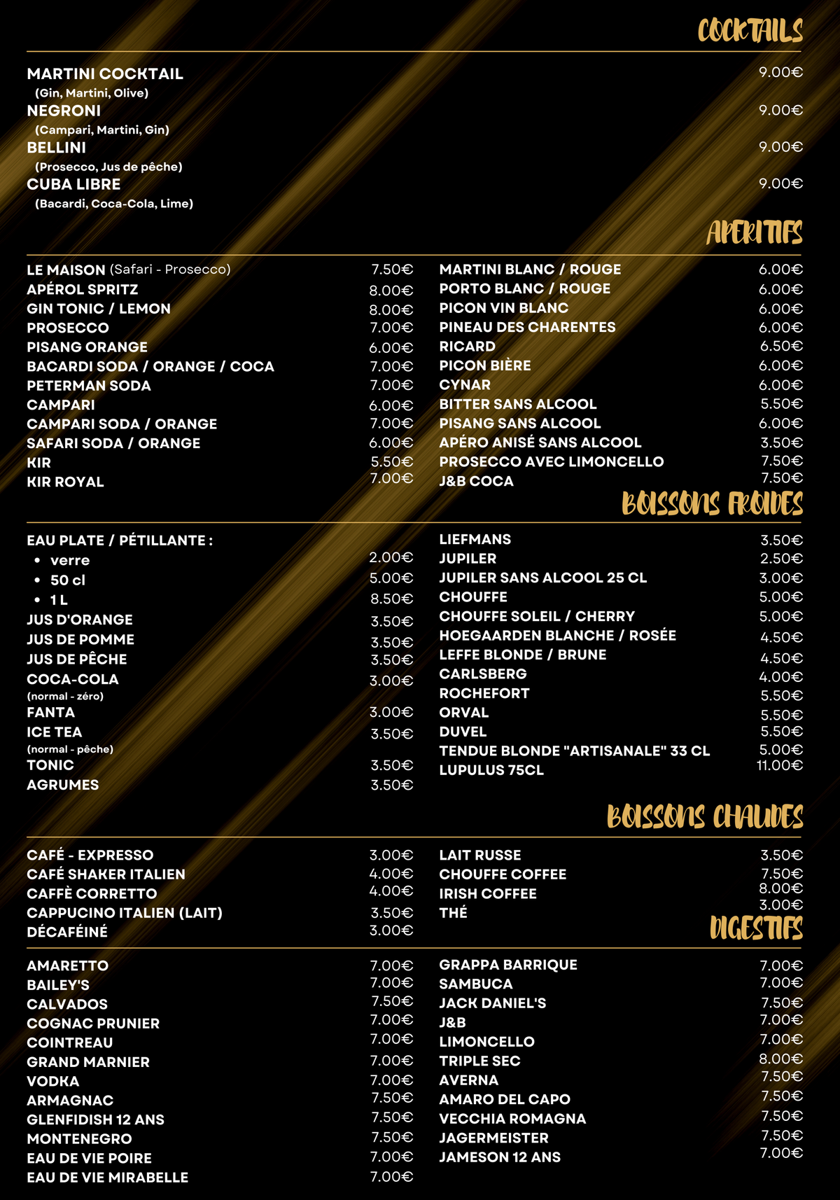Menu à l'emporter